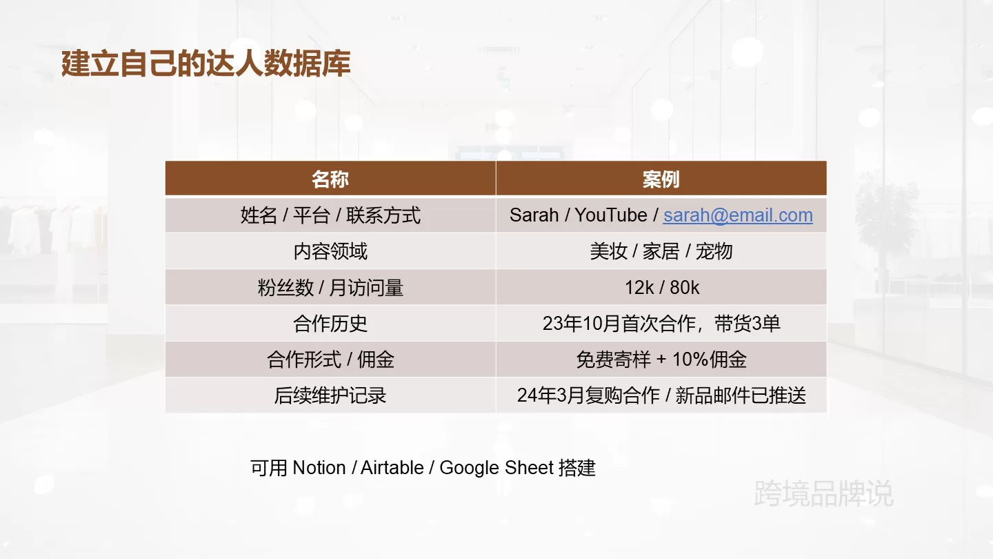 数据库的目的是提升合作效率,这里的数据库是给大家举个简单的例子,可以根据实际情况去补充夯实数据库资源。